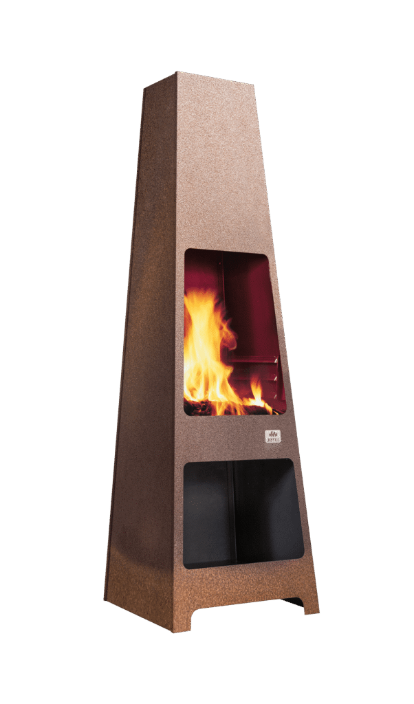 Stor og vedlikeholdsfri utepeis med grillmuligheter, laget i cortenstål. Etter kort tid får materialet en rustikk, røff og rusten overflate. I tillegg til å gi utepeisen en lekker patina, fungerer det også som beskyttelse for stålet, og gjør at utepeisen tåler å stå ute hele året. Et stort, åpent og opphøyd brennkammer, gir godt innsyn til flammene fra flere vinkler. Et flott tilskudd til uteplassen som vil bli et naturlig samlingspunkt til langt på kveld. Grillrist, gnistfanger og underlagsplate fås som tilleggsutstyr. Utepeisen må plasseres på et ikke-brennbart materiale.