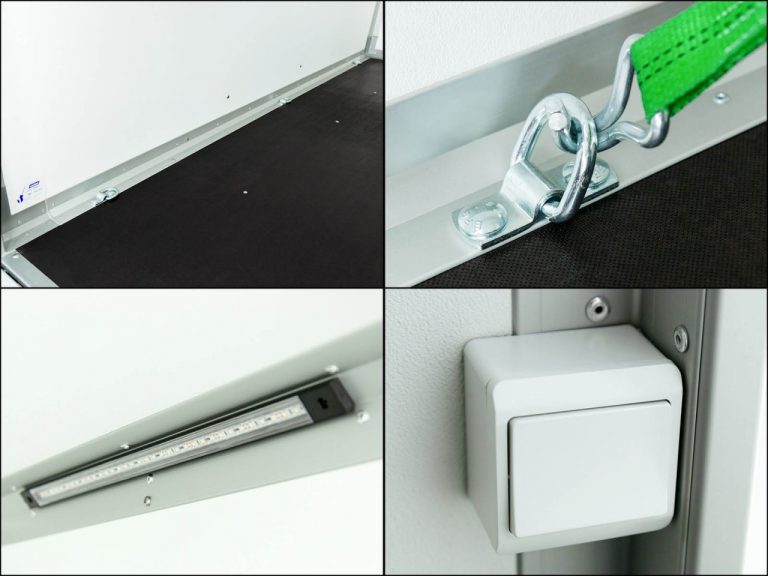 Tous les modèles sont équipés de série d’anneaux d’arrimage intérieurs, de supports et d’une roue d’appui robuste. Ce fourgon est équipé d’une rampe de chargement pratique avec dispositif d’aide au levage et d’un revêtement en caoutchouc antidérapant.